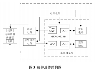 用于固井泥漿的電磁流量計(jì)的硬件部分主要由傳感器、電源電路、勵磁電路、信號調(diào)理電路、信號采集處理電路及接口電路等模塊組成,如圖3所示。本文重點(diǎn)介紹關(guān)鍵模塊勵磁電路和信號調(diào)理電路。
