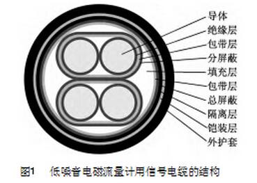 在石油化工、冶金、食品飲料、制藥、造紙、染料等眾多領(lǐng)域,通常采用污水處理流量計對流動的各種混濁、懸浮液體介質(zhì)(水煤漿、泥漿污水、水泥混凝土漿、紙漿、金屬流體等)的流量進行測量。污水處理流量計用信號電纜主要用于將污水處理流量計的實際測量結(jié)果信號傳輸至顯示系統(tǒng)。隨著污水處理流量計測量系統(tǒng)中電路的日趨復雜和對信號傳輸要求的逐步提高,傳統(tǒng)污水處理流量計用信號電纜的性能已無法滿足使用要求,因此本公司開展了一種新型低噪音污水處理流量計用信號電纜的研制。