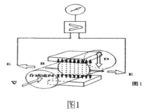 當(dāng)導(dǎo)電流體經(jīng)傳感器通道時(shí),導(dǎo)電流體流向垂直于磁力線方向,流體流動(dòng)時(shí)切割磁力線,在導(dǎo)電流體中有感應(yīng)電勢(shì)E產(chǎn)生,感應(yīng)電勢(shì)與流速之間的關(guān)系式為:E=KBvD