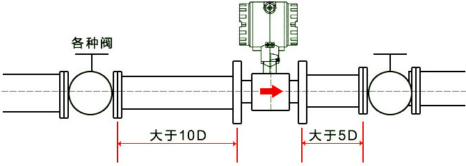 1、安裝時(shí)液體流動方向應(yīng)與傳感器外殼上指示流向的箭頭方向一致,且上游直管段應(yīng)≥20dn,下游直管段應(yīng)≥5dn,其中dn為管道內(nèi)徑。