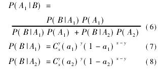 用C事件代替式(6)~(8)中的B事件,計算可得C發(fā)生的情況下A1的可信度為7.08%,即后驗概率為P(A1|C)=7.08%,P(A2|C)=92.92%。