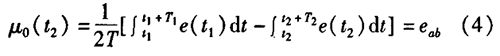 腐蝕性污水流量計一般都采用工頻交流電源供電,其電源電壓的幅值和頻率的變化都會給腐蝕性污水流量計帶來電源性干擾噪聲。對電源電壓的幅值變化,因采用多級集成穩(wěn)壓,一般而言電源電壓的幅值變化對電磁流量的測量精度影響不大。當電源電壓的頻率波動時,雖然其波動范圍有限,但對腐蝕性污水流量計測量精度影響較大。為了解決工頻干擾問題,實現(xiàn)對流體流速感應(yīng)電勢e柚信號的準確測量,需利用以下基本關(guān)系:①勵磁周期為工頻周期的整數(shù)倍,即勵磁頻率為50/nHz(n為偶數(shù));②正負勵磁下的同相位采樣。圖2是對應(yīng)低頻矩形波勵磁形式下的典型電勢信號形式,按上述關(guān)系在一個勵磁周期下,若假設(shè)t。和t:點為工頻干擾的等效干擾點,且采樣寬度T=T1=T2,則e –ab的基本算式為:,