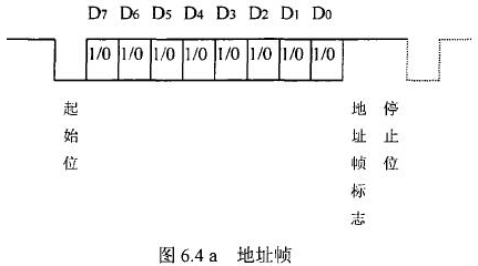 分體式電磁流量計(jì)等節(jié)點(diǎn)設(shè)備和站內(nèi)PC機(jī)間的通信采用異步串行通訊控制規(guī)程,并采用地址位喚醒握手協(xié)議。因此在協(xié)議中規(guī)定了傳地址和傳數(shù)據(jù)兩種不同的幀格式,如圖.64所示。地址幀和數(shù)據(jù)幀由11位構(gòu)成,幀格式為l位起始位,l位停止位,8位數(shù)據(jù)位,1位*9位。我們將*9位設(shè)定為“地址/數(shù)據(jù)指示位”,用來區(qū)分所發(fā)送/接受的幀信息是地址幀還是數(shù)據(jù)幀。*9位為1,表示PC機(jī)發(fā)送/接受的是“地址幀”*9位為O,表示主機(jī)發(fā)送/接受的是“數(shù)據(jù)幀”。命令幀與校驗(yàn)和的發(fā)送格式與數(shù)據(jù)幀相同,因此可由數(shù)據(jù)幀演化得到。