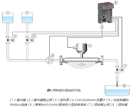 操作員使用觸摸屏顯示器輸入總混合量和各個步驟的數量。然后,通過觸點或在顯示屏上開始混合操作。然后由控制系統(tǒng)的BatchControl軟件自動啟動泵和閥門。整個混合操作完成后,安裝會自動停止。