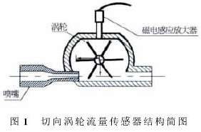高溫導(dǎo)熱油流量計(jì)基本構(gòu)造見(jiàn)圖1。被測(cè)流體在流經(jīng)葉輪之前流道會(huì)減縮,流速增加,流體經(jīng)過(guò)葉輪后葉片旋轉(zhuǎn),磁電傳感器記錄葉片轉(zhuǎn)動(dòng)頻率,得到被測(cè)流體相對(duì)應(yīng)的流量。