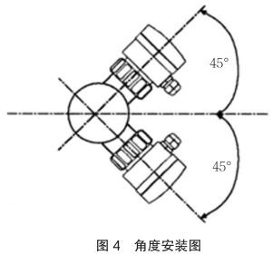 垂直安裝時確保流向由下而上,如圖 4 中箭頭所示,應(yīng)與管道水平中心線成 45 度角安裝航空煤油流量計。