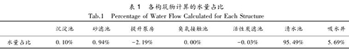 據統(tǒng)計,各構筑物的水量占比如表 1 所示。