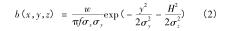 式中: b(x,y,z) = w × e(x,y,z),其中 e(x,y,z) 為二氧化硫濃度與循環(huán)流化床dn150渦街流量計(jì)煙氣排放源煙氣強(qiáng)度的比例系數(shù);f 為平均風(fēng)速,m/s; w 為地面空氣內(nèi)煙氣排放強(qiáng)度;σ x 為橫向擴(kuò)散系數(shù)受環(huán)境穩(wěn)定度與下風(fēng)向距離因素的影響程度。式(3)中描述的是基于時(shí)間變化的循環(huán)流化床dn150渦街流量計(jì)煙氣排放源煙氣排放強(qiáng)度計(jì)算模型。