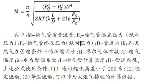 天津 LNG 設置兩座電磁流量計,單臺設計處理量 60t/h, 兩臺火炬并列運行,一用一備。自 LNG 儲罐及 BOG 系統(tǒng)來的超壓 BOG 經(jīng) PV 閥后進入火炬氣排放總管,經(jīng)分液罐沉淀 BOG 中夾雜的液滴后進入火炬燃燒放空。 測水電磁流量計設置四級排放,具體設置如表 1。 2 火炬氣排放量計算方法根據(jù)水平輸氣管流量計算基本公式: