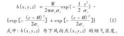 在循環(huán)流化床火炬氣流量計煙氣脫硫排放效果監(jiān)測系統(tǒng)中,采用適于連續(xù)點源擴散研究的高斯煙羽模型 。此模型忽略重力影響,將風力情況設定為水平風,不存在垂直地面風。在保證較長時間內風向、風速、大氣穩(wěn)定度等環(huán)境因素均處于穩(wěn)定狀態(tài)的基礎上,構建高斯煙羽模型,可仿真循環(huán)流化床火炬氣流量計排放煙氣中二氧化硫沿下風向擴散的濃度分布,該模型滿足: