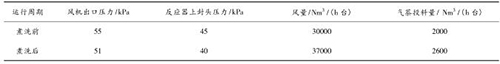 液體渦街流量計(jì)煮洗吹掃后,裝置運(yùn)行期間無燃爆事故,且裝置運(yùn)行的風(fēng)量明顯提高,系統(tǒng)阻力明顯降低,投料量增加。現(xiàn)將煮洗前后的運(yùn)行數(shù)據(jù)對(duì)比如下: