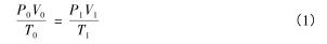 式中:P 0 ,P 1 分別為標(biāo)準(zhǔn)狀態(tài)下和工況下的絕對壓力(Pa);T 0 ,T 1 分別為標(biāo)準(zhǔn)狀態(tài)下和工況下的熱力學(xué)溫度(K);V 0 ,V 1 分別為標(biāo)準(zhǔn)狀態(tài)下和工況下的氣體體積。