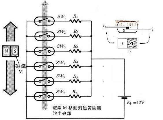 磁變送器(干簧管變送器):與磁開關(guān)的原理相似,它是捆綁在浮筒外面。當(dāng)浮筒里面的浮子隨著液位變化時,上下移動,浮子中的磁鋼所在的位置將改變干簧管中磁開關(guān)的狀態(tài)(閉合),只有在磁鋼作用范圍內(nèi)的干簧管閉合,其它都處于開路狀態(tài),從而改變回路的電阻值,或者說是改變了輸出回路的阻值。浮子的位置相當(dāng)與電位器的滑動點,隨著浮子的位置變化,引起上下電阻的抽頭(上下電阻值)變化,液位越低,電阻值越大,越高電阻越?。ǔ鼍€在頂部)。由于回路是恒(定電)流,再通過電流/電壓轉(zhuǎn)換,進而可以轉(zhuǎn)化為4~20mA/HART 等信號。液位變化,液位旁邊的磁開關(guān)閉合,電阻值變化,輸出電壓隨之變化。