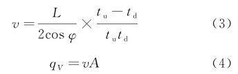 由式(1 ),( 2 )聯(lián)立推導(dǎo)出流體流速和流量的計(jì)算公式如下: