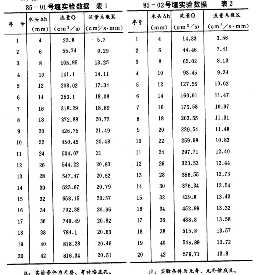 2.無補償?shù)卓椎碾p曲線無脊薄壁堰,見圖8,其流量與作用水頭之間變化關(guān)系基本上是線性的,流量系數(shù)K值隨作用水頭升高略有增大。