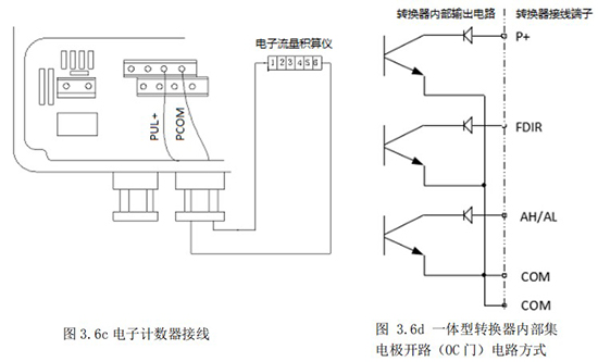 1.5 頻率(脈沖)、上下限報(bào)警、流向標(biāo)示等輸出均為集電極開路的電平輸出信號(hào)。
