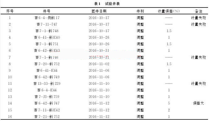 通過現(xiàn)場多口井試驗(yàn),試驗(yàn)井如表1所示。污水流量計(jì)可以較為準(zhǔn)確地計(jì)量水泥車上水總量,防止替空、留水泥塞事故的發(fā)生。